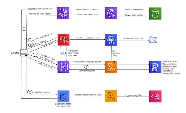 In this article, Rebeca Chinicz describes step-by-step how to build a small e-commerce application. Everything is here, the website in S3, cached by Cloudfront, the API exposed with API Gateway, the authentication through Cognito, the backend with Lambda and DynamoDB as the data store. A pretty standard serverless architecture and another good tutorial.