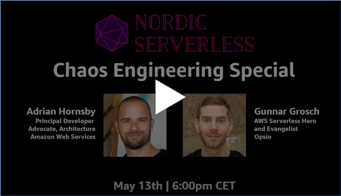Nordic Serverless had a special event about Chaos Engineering and how to perform chaos in a serverless world. In this video, Adrian Hornsby and Gunnar Grosch are discussing about experiments you can do to evaluate impact of several events (latency, exceptions, timeouts, …). They also provide some tools you can use to do these chaos experiments. Slides are available here.