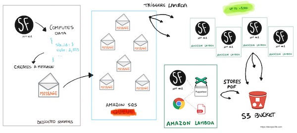 In this article, Tristan Bessoussa explains how he was able to generate 2000 PDF files in 2 minutes instead of 11 hours, using Lambda and SQS, for less than 2$. A really good example of what you can achieve with serverless!