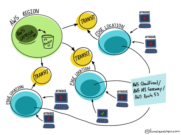 This article provides meaningful information on how to handle DDoS attacks in a serverless environment. The cloud itself provides some protection but you can / should obviously adopt some good practices.