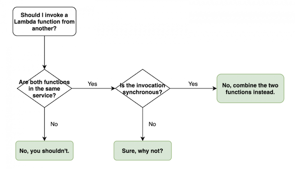 We tend to say that it is not a good practice to invoke a lambda from another lambda as it strongly couples the two functions. But in this blog post from Yann Cui, you'll see there are cases when you can actually do this.