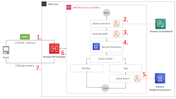 In the same idea, you can integrate API Gateway and Step Functions without any Lambda in the middle. But now, you can even get a synchronous response from the state machine and return it directly to the client. As you could probably do a lot of things within a unique Lambda function, Step Functions will help to respect the Single Responsibility Principle. No more excuse for decoupling!
